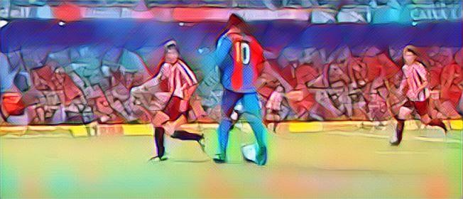 Lateral largo para que el Eto’o logre bajar la redonda con la cabeza, enviándola hacia el lateral. El encargado de tomar ese balón fue Ronaldinho, que tras un leve control, empujó la pelota por encima del defensa rival, quien intentó recuperar con una barrida, pero quedó tirado en el césped, completamente fuera de la acción. 1 segundo, y ya había eliminado a un contrario de manera excepcional. El público se expresó con el típico grito de cancha: “ohh”, tras ver el regate del 10. Todo el estadio se puso de pie al ver que el Balón de Oro 2005 se dirigía hacia la portería contraria. El primer paso estaba hecho. Ahora tocaba superar a los próximos dos futbolistas del Bilbao, que rápidamente fueron a taparle el camino.